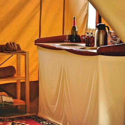 - En-suite bathrooms with hot-water safari bucket showers