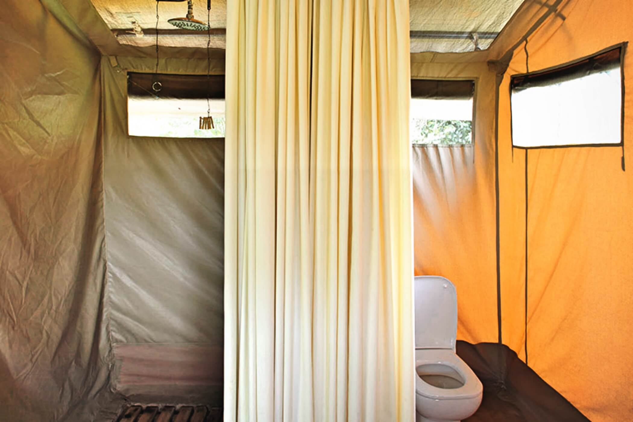 En-suite facilities include refreshing hot water bucket showers and convenient flushing toilets. Beds are adorned with snug blankets and a hot-water bottle for added comfort during cooler nights.