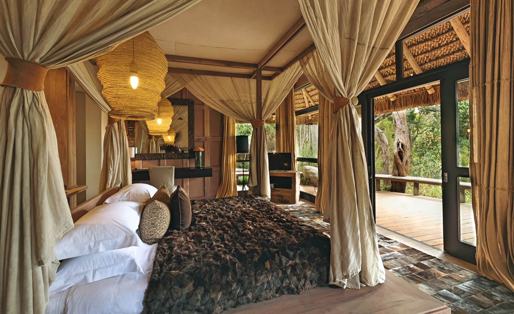 Infused with ethnic flair, these suites exude warmth and authenticity, with rich textures, vibrant hues, and African-inspired accents creating an enchanting retreat.
